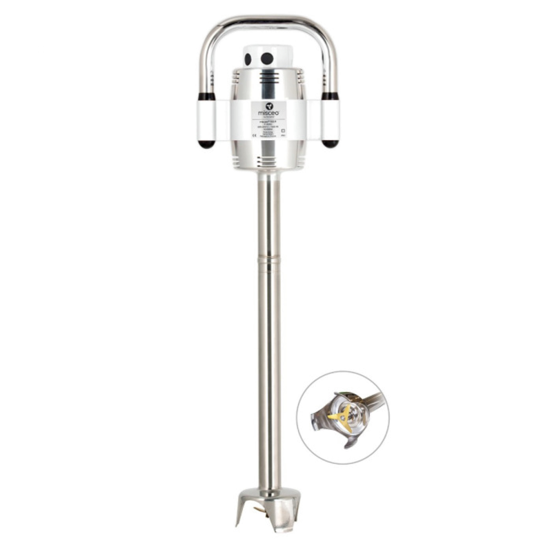 Doté d’un moteur puissant de 1100 W, le MISCEO 1100 P permet de traiter des volumes importants tout en maintenant une excellente précision de mélange. Sa tige de 520 mm équipée de 3 lames en acier inoxydable optimise la dispersion, l’émulsion et la réduction des particules, garantissant ainsi une texture homogène et stable.