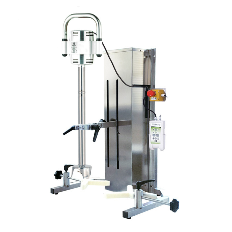 Le mélangeur homogénéiseur MISCEO 1100 F est un équipement professionnel conçu pour les applications intensives de mélange, dispersion et homogénéisation dans des cuves allant jusqu’à 200 litres. Équipé d’une tige cisailleur de 520 mm avec système à 3 lames, il assure un fort pouvoir de cisaillement permettant d’obtenir des textures parfaitement homogènes, même avec des produits visqueux ou complexes.