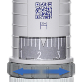Réglage rapide et précis, même d’une seule main gantée. Le crantage de la bague évite tout dérèglement involontaire. Affichage numérique clair et lisible, orientable par rapport au bec verseur. Ce système de réglage véritablement digital contribue à l’excellente stabilité des performances à long terme. Chaque pas de la came cylindrique est pré-étalonné et correspond à une division sur l’échelle des volumes.